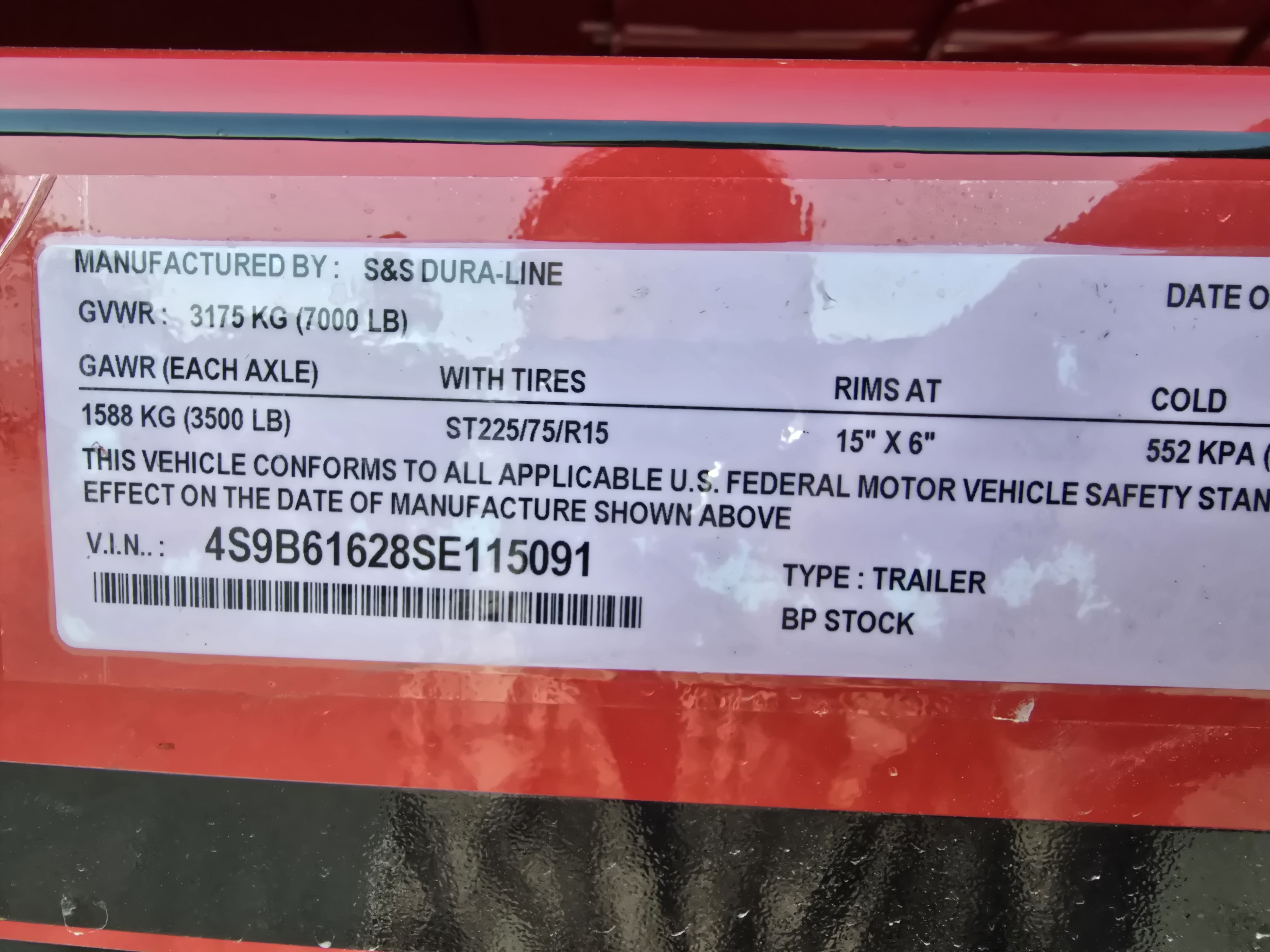 2025 S&S Dura-Line 16' Bumper PullRED in Color