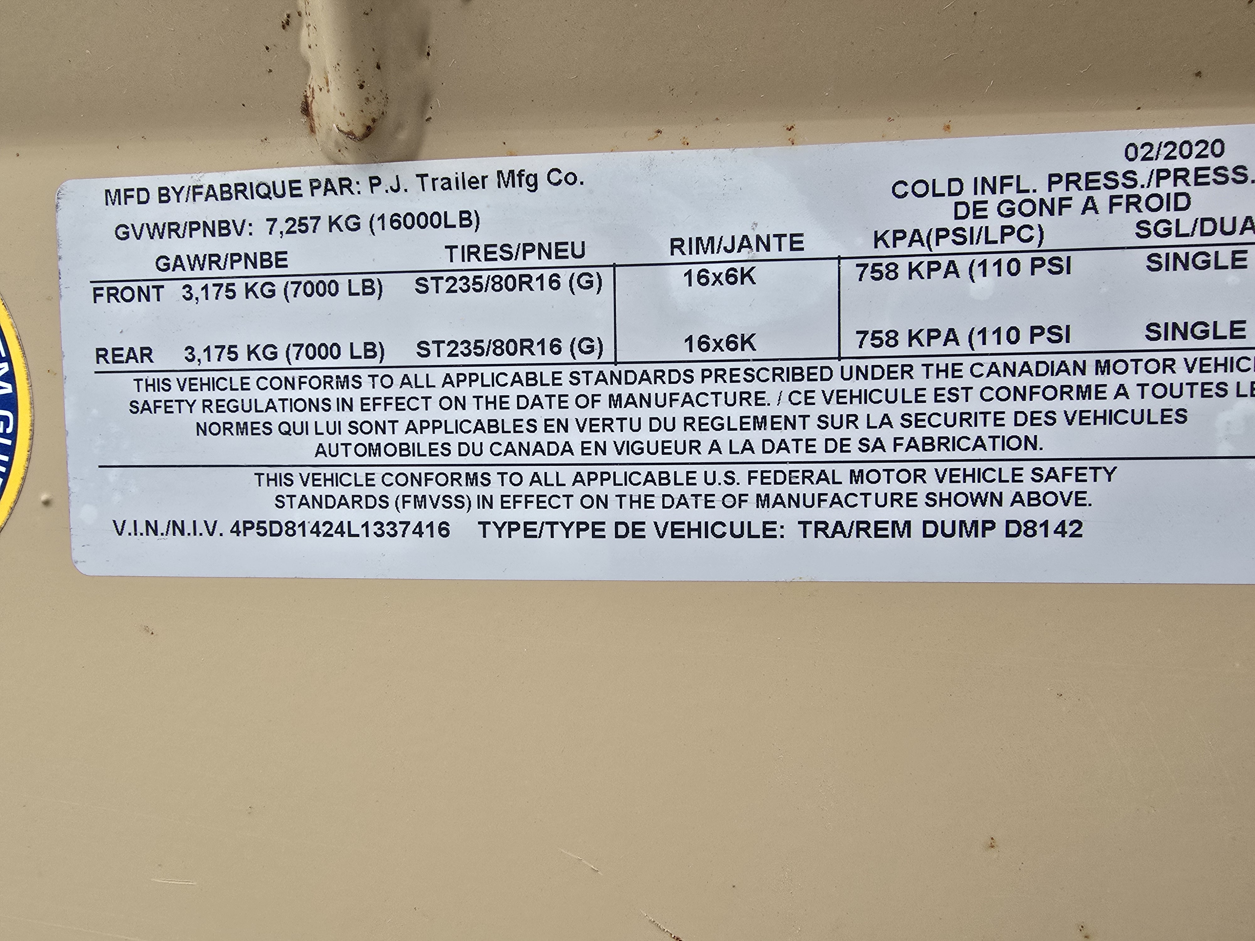 - GVWR: 16,000 lbs.- Tires: ST235/80R16 (Load Range G)