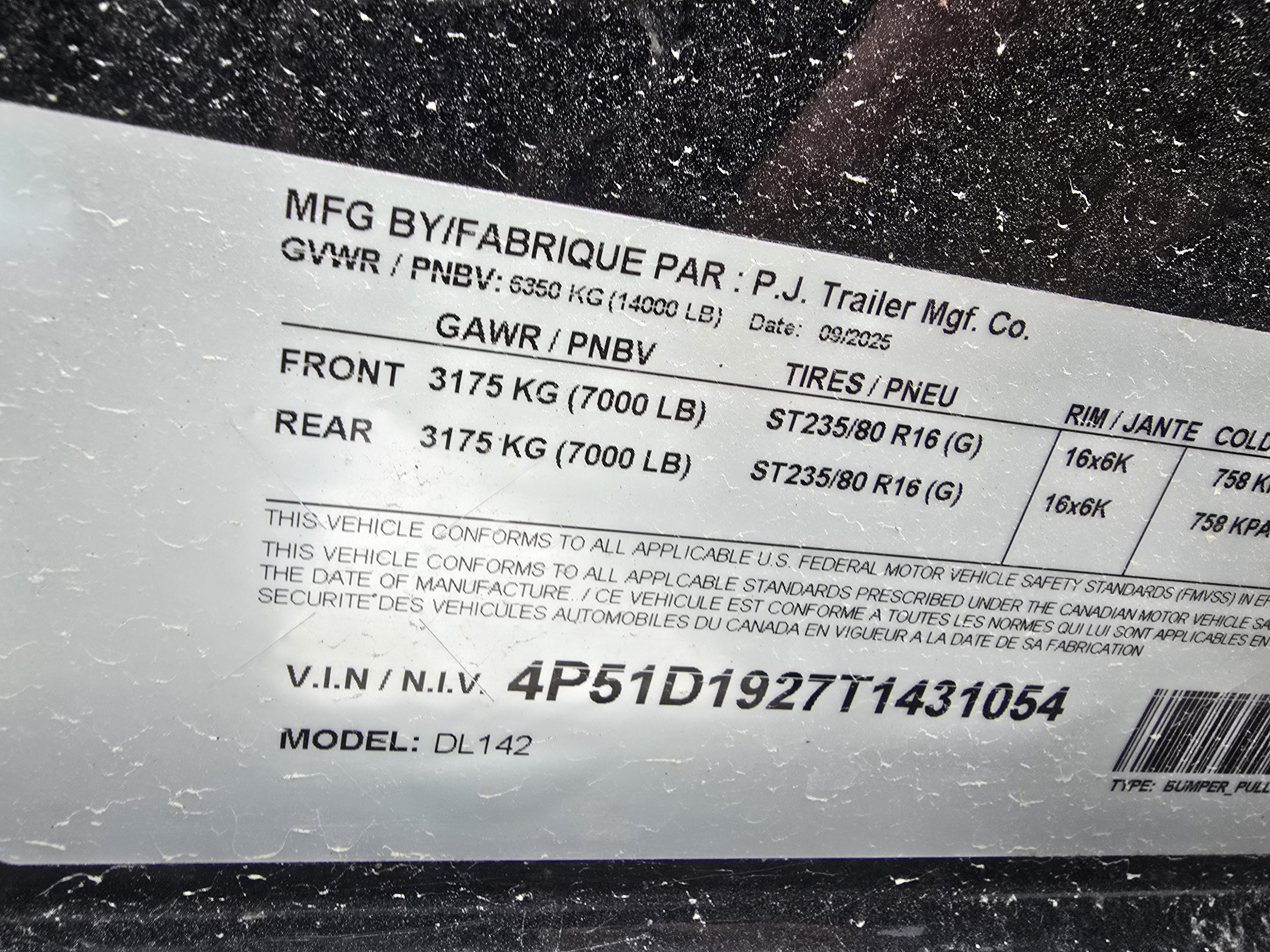 - Axles: (2) 7,000 lb. w/ 14 Ply LR-G Tires, Electric / Spring